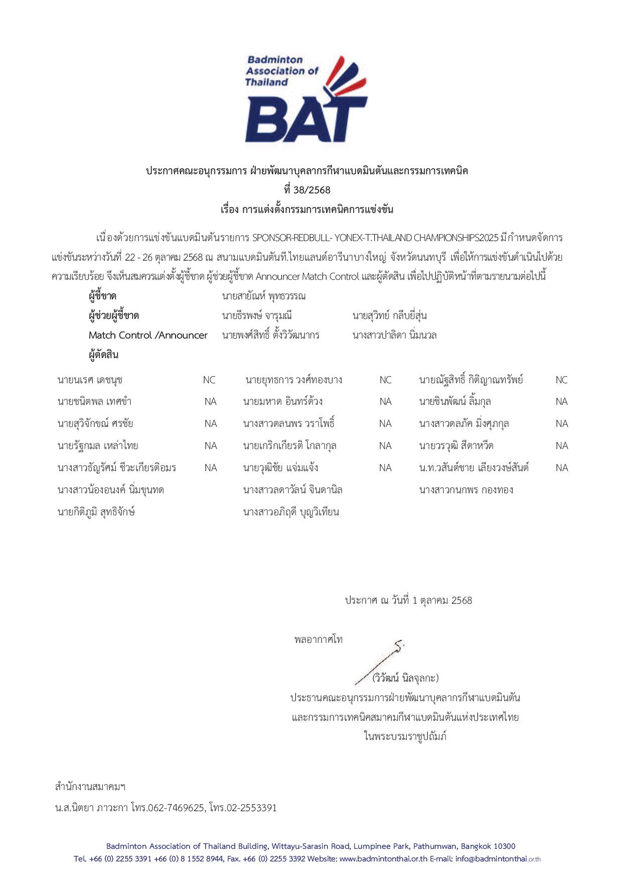 ณ สนามแบดมินตัน ที.ไทยแลนด์ อารีนา บางใหญ่ จ.นนทบุรี